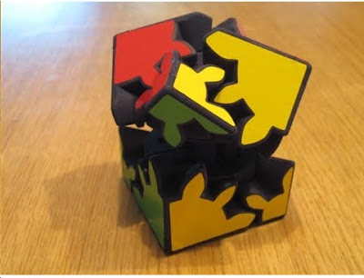 Gear Shift is the creation of Bram Cohen & Oskar van Deventer. The official description: Gear Shift is based on an idea by Bram Cohen. This puzzle has eight gears around a cube. All gears can turn together. But it is also possible to pull the gears apart in two sets of four. Each set of four can be turned individually. And there are three ways to split the gears. The object of this puzzle is similar to Rubik's Cube: scramble it and then try to solve it.