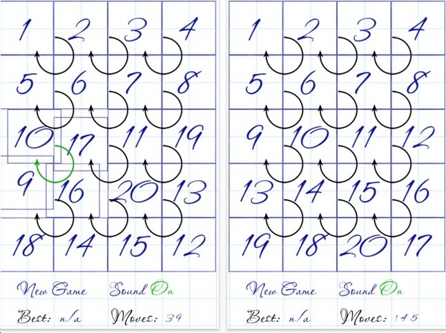 Do you like the 15 Puzzle? There have been hundreds of variations. On first glance, this version seems easy. Not so!