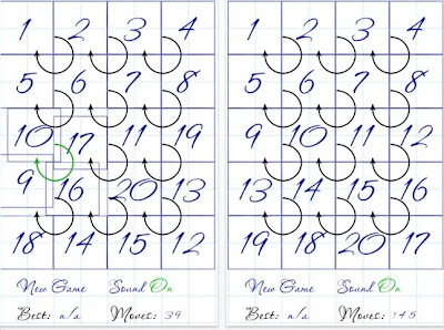 This is not the 15 puzzle. But the objective is the same: get the numbers in order. Click on any arrow and watch those numbers rotate clockwise. This puzzle is not new. I recall seeing it on a Nokia cell phone maybe 5 years ago.