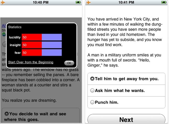 Alex Livingston created this very strange, dark twisted little tale. Answer correctly and you will increase your lucidity and insight. If your fear gets too high - back to the beginning.
