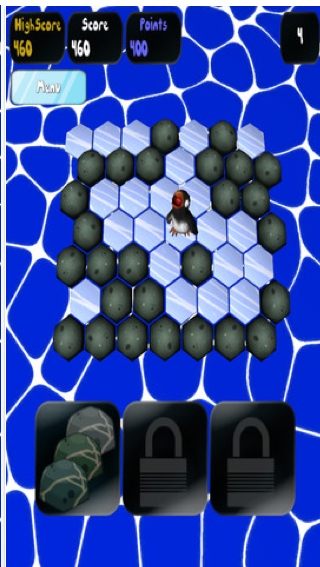 The penguin takes 1 step, then you get to block 1 step. If you step on a 'supply crate', it can provide you with a choice of 5 things to help keep the penguin sealed in. For example, look at the image.  See the 3 rocks grouped together at the bottom of the screen? They can be deployed.