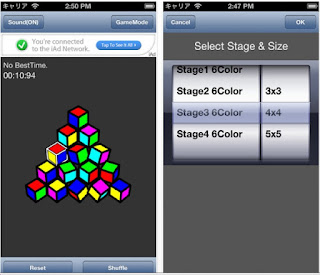 MatCube is a very interesting, difficult sequential movement puzzle.  It's similar to Lights Out.  Touch 1 cube and the surrounding cubes rotate.  In Lights Out games, the surrounding pieces turn on/off.