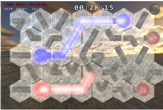 Rotago is actually a route-finding/shunting puzzle.  On The Continuum, the levels start easy, but they get tricky and I started to panic.  The highest level I got to was 14.