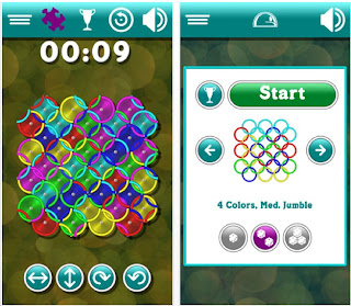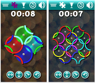 Ken Tylman recently sent me a promo code to play his new puzzle game app: Rynglets. The object is to rotate each circle so that the rings will transfer to their matching circle.