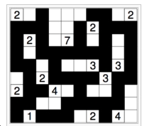 Essentially: each number indicates how many squares are on its island. Islands may touch each other diagonally, but not otherwise. Now look at the solution: notice that there are no 4 black squares in a 2x2 grid.