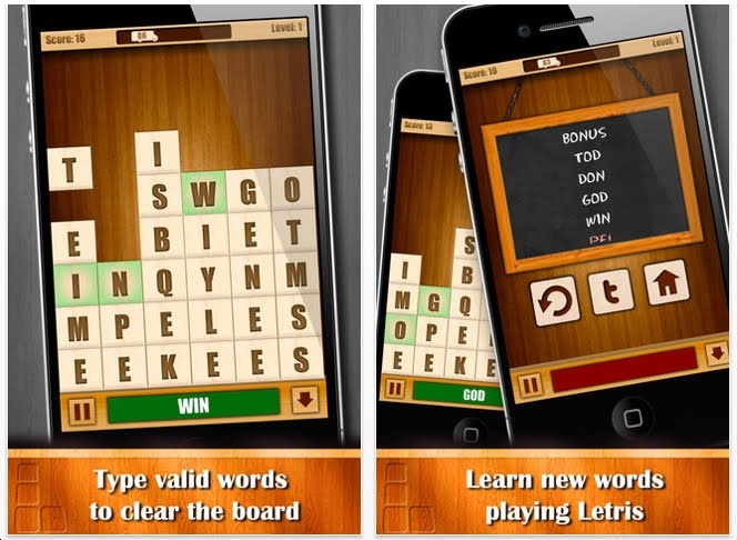 Letris 2 is similar to Tetris. Letters fall down and you must spell words. Extra points if you can clear the board. I've done the first 2 levels and must admit: it's fun. And hey, it's free.