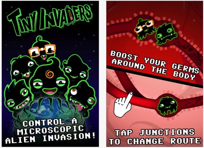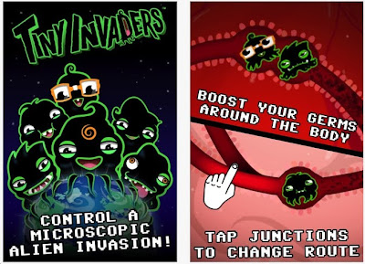 I played Tiny Invaders about 6 months ago. The object is to manipulate the virus to infect the person. It's half puzzle, half arcade. The Hogrocket public relations man, Pete Collier, recently informed me of an update. So I'm informing you. As I said in my review 6 months ago, it's not the greatest puzzle app, but it's fun and worth your time.