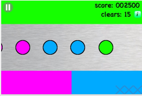 Ellipsis: colored dots scroll onto the screen. Your task: drag them into the corresponding colored rectangle. This was categorized by the App Store as a puzzle, but it's really an arcade action game. It's fun!