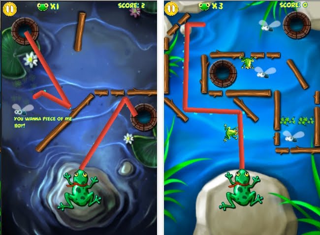 The objective of Hog Frog is to catch all the flies in 3 flicks of the tongue. The tongue will have to ricochet off the wood to bend around objects.