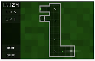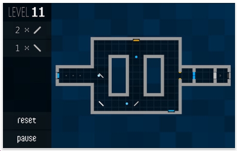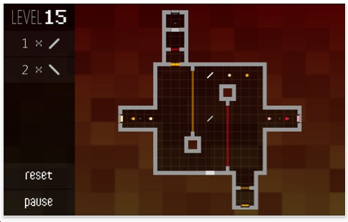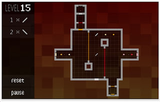 Look at Level 24. 1 mirror is tilted, the other is vertical. I don't think I've seen that element in mirror mazes before.