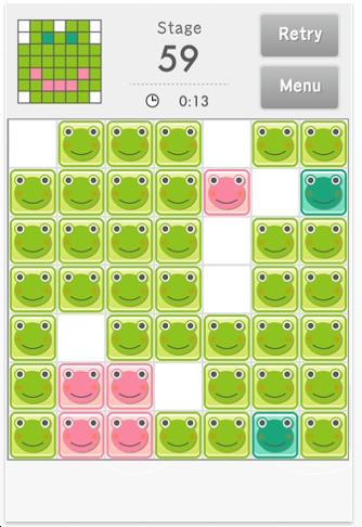 The object of Slide Frog, a free puzzle app, is to slide rows and columns - not individual cells - to match the given pattern.