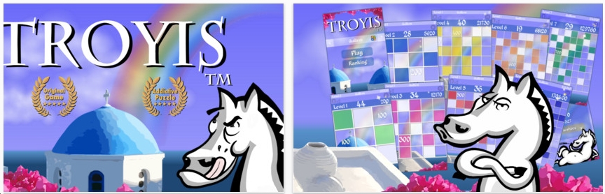 Troyis is a Knight's Tour type of puzzle. The object is to land on all the white squares as quickly as possible. Other squares cannot be landed on.