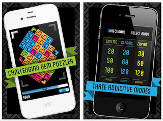'Directional - Gem Matching Game' is the name of this point-scoring puzzle app game. The object is to score as many points as possible by tapping on groups of like-colored gems.