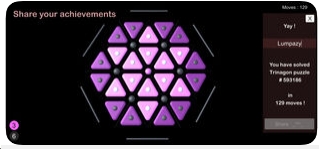 Trinagon Sample comes from Lucas Pradlwarter. The object is to rotate sets of 6 triangles in order to rearrange the dark purple triangles to match a given pattern.