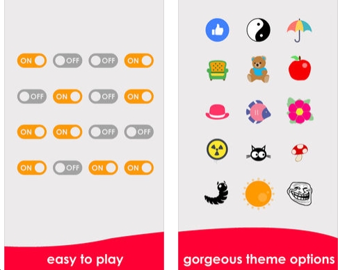 eceo comes from Adem KAYIRCI. The object is to get all the switches to be either on or off. Each individual switch has its own controls.